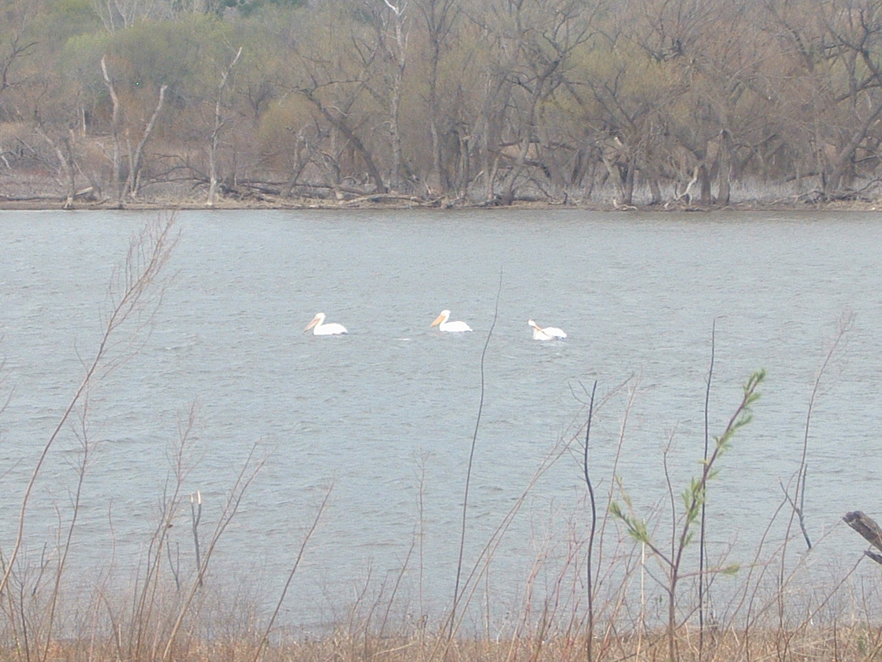 We did some research on the American White Pelican, and here’s what we learned. Like us, they winter from Florida to Mexico along the Gulf Coast. Like us, they pause on their northward migration in the middle Mississippi Valley for three to five weeks, typically beginning around the first of March and leaving in early April for Canada, Minnesota, and as far west as northern California. Up there they nest, while avoiding hurricanes, oil spills, and humidity. These stragglers were catching fish, eating all of them, and doing well at it. They were still fishing when we left for Marion Lake, so we didn’t get to see them fly. Not every day do you see a thirty pound bird aloft.