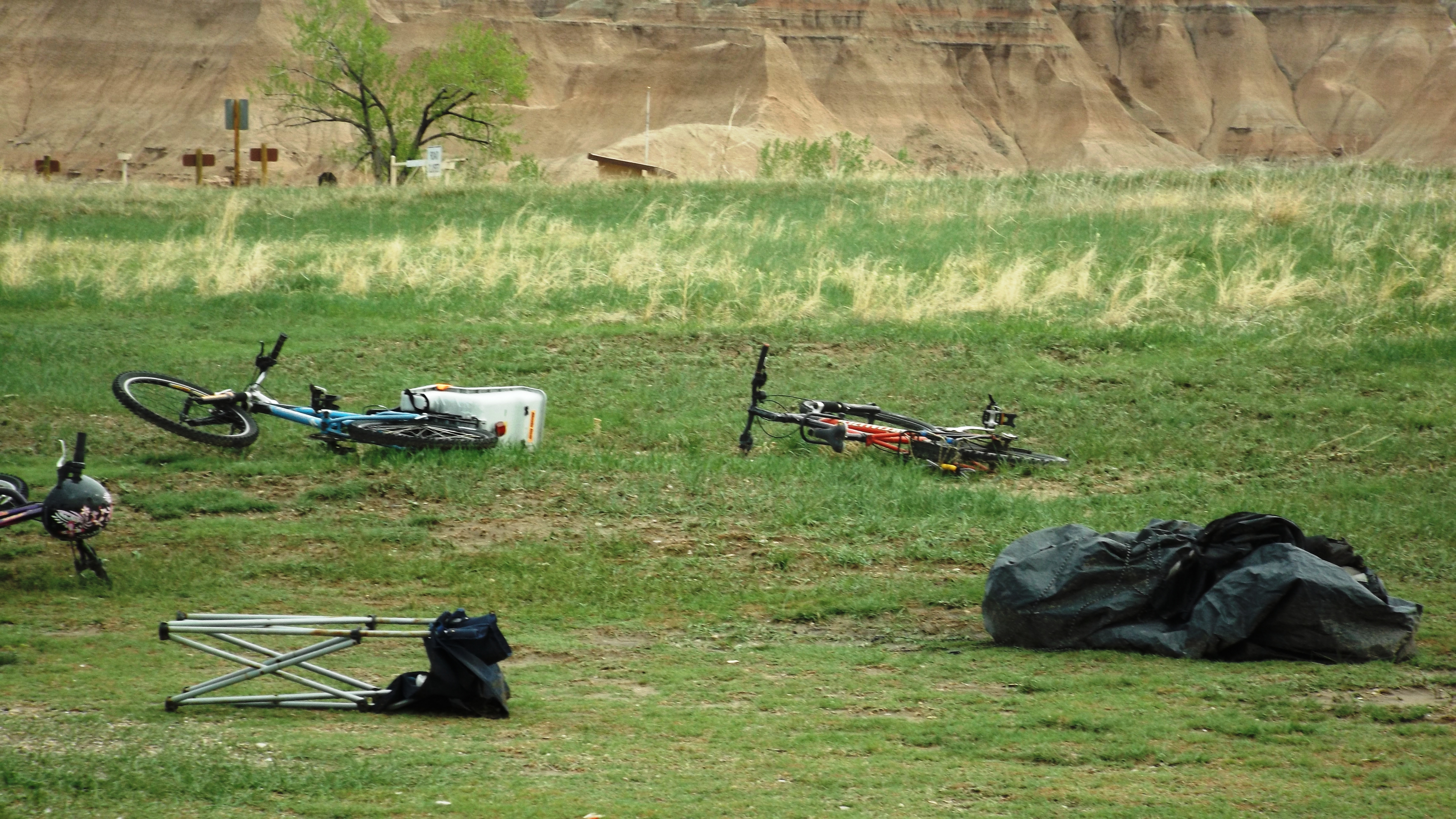 Several more rain bands tore through overnight. By sunup Sunday it was over. I checked The Red Sled and Kat’s Cradle; neither seems worse for the wear. But we got a whole lot of rain here. My guess is close to 2 inches. There’s standing water here and there over the campgrounds, and it borders on miraculous how green everything has become overnight. Trees that were bare a week ago are nearly fully leafed out today. Every kind of grass or weed has perked up. Even the cacti look extra prickly.