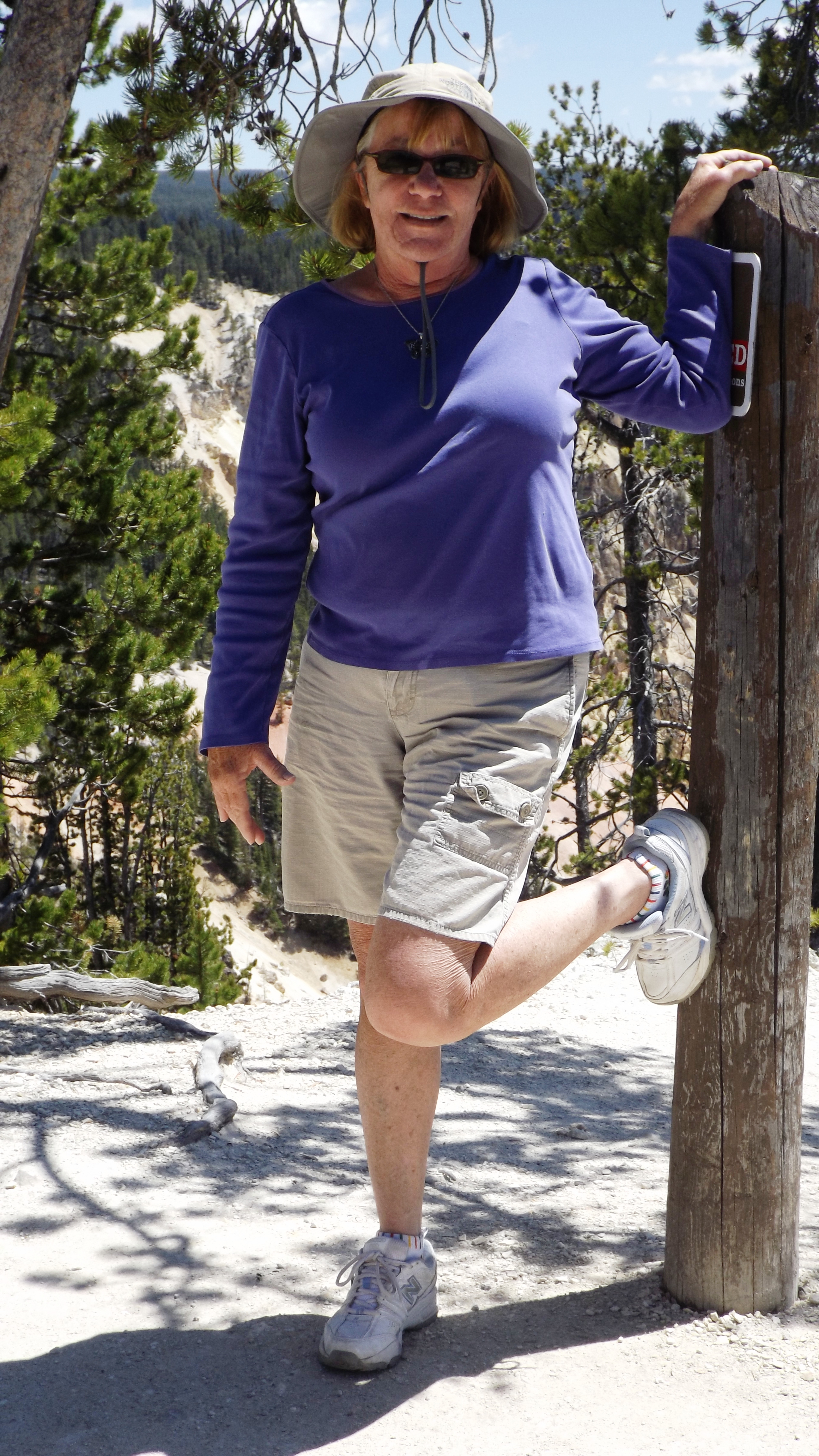 Geothermal features are practically unique to Yellowstone, but the mountains, streams, alpine lakes, and wildflowers may be at least as good as the other Parks. All national parks are busy in the summer but this one is very near the top. People come to the ‘Stone for a reason, I figure because they believe they’re going to see something here they won’t anywhere else. Some come a long, long way. We heard a lot of Asian languages spoken, and surprisingly more German than BBC or Crocodile Dundee English. We saw hordes of Japanese tourists posing before signs, the best overlooks, and even on their rental autos. Their women tend to be a bit dramatic, often doing Betty Garble or Marilyn poses while blocking our vision of a Rick Steves view. It annoyed the Kat. Here’s her revenge.