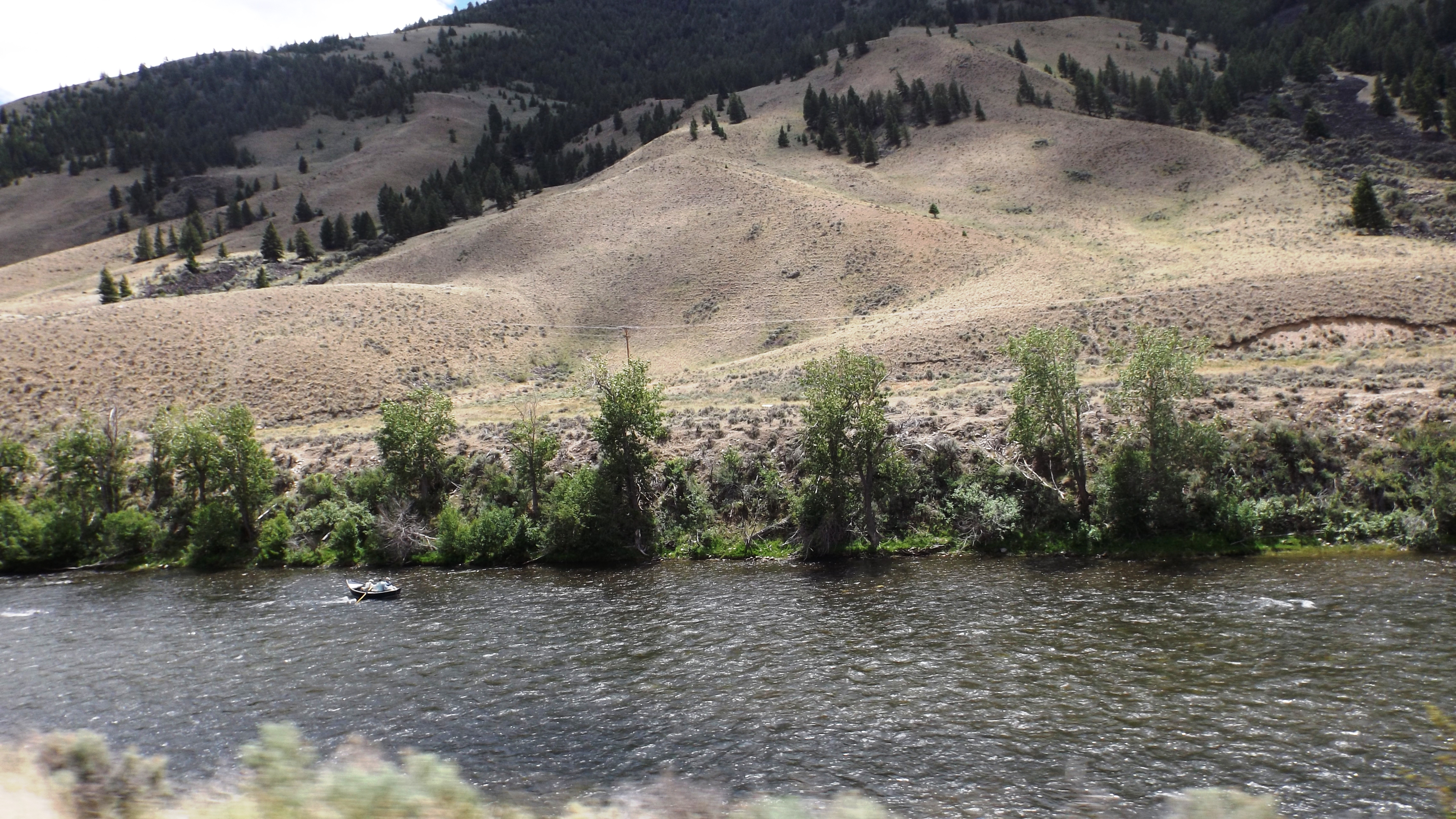 Since our batteries almost ran out in Yellowstone we only trust them for two or three days. Despite today’s 110 mile pull we planned to camp in Challis at another full-service but no-scenery Passport America park in Challis. The park delivered what we came for and soon enough we were on our way north, looking for a campsite on the big part of the Salmon River.