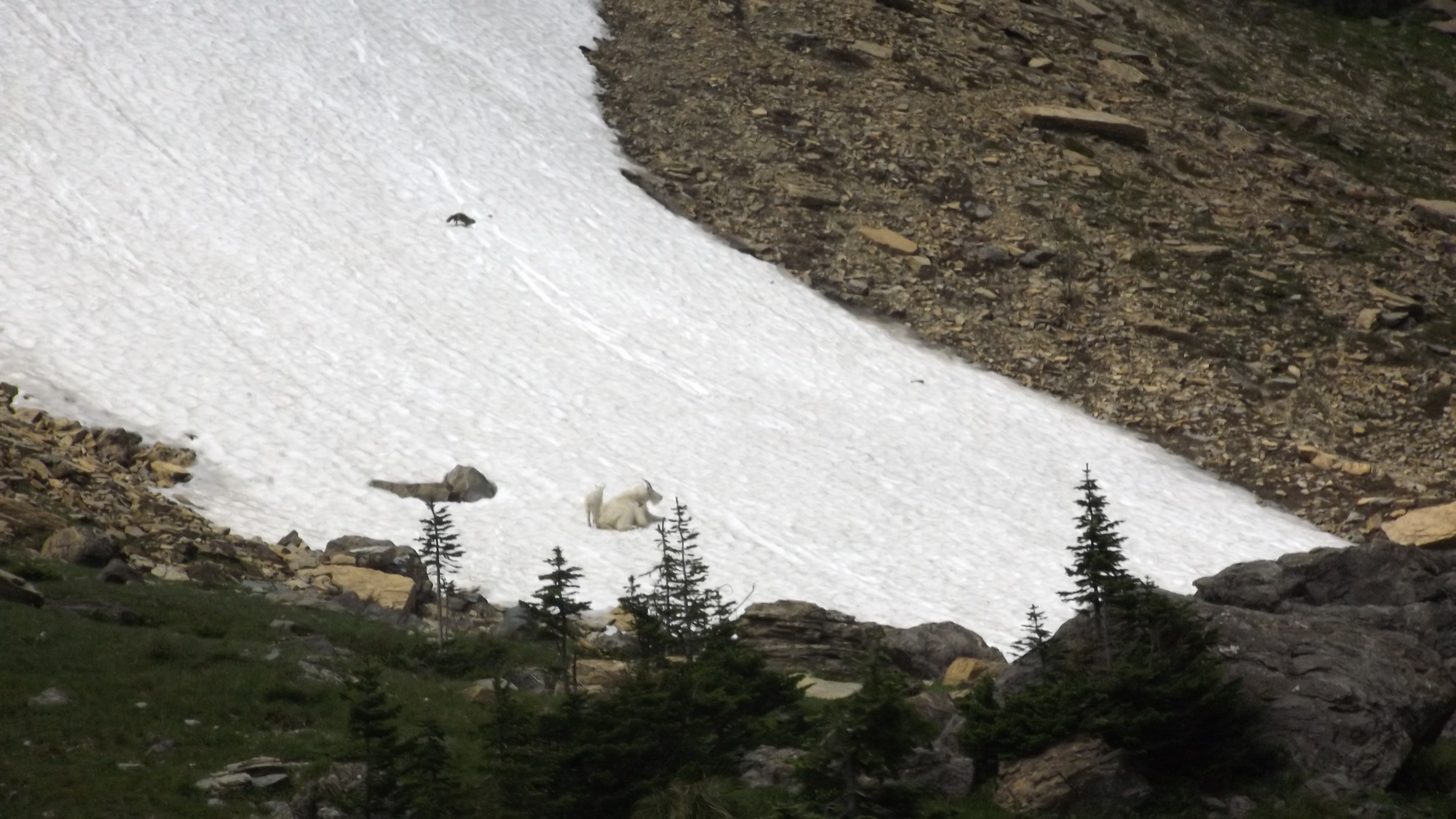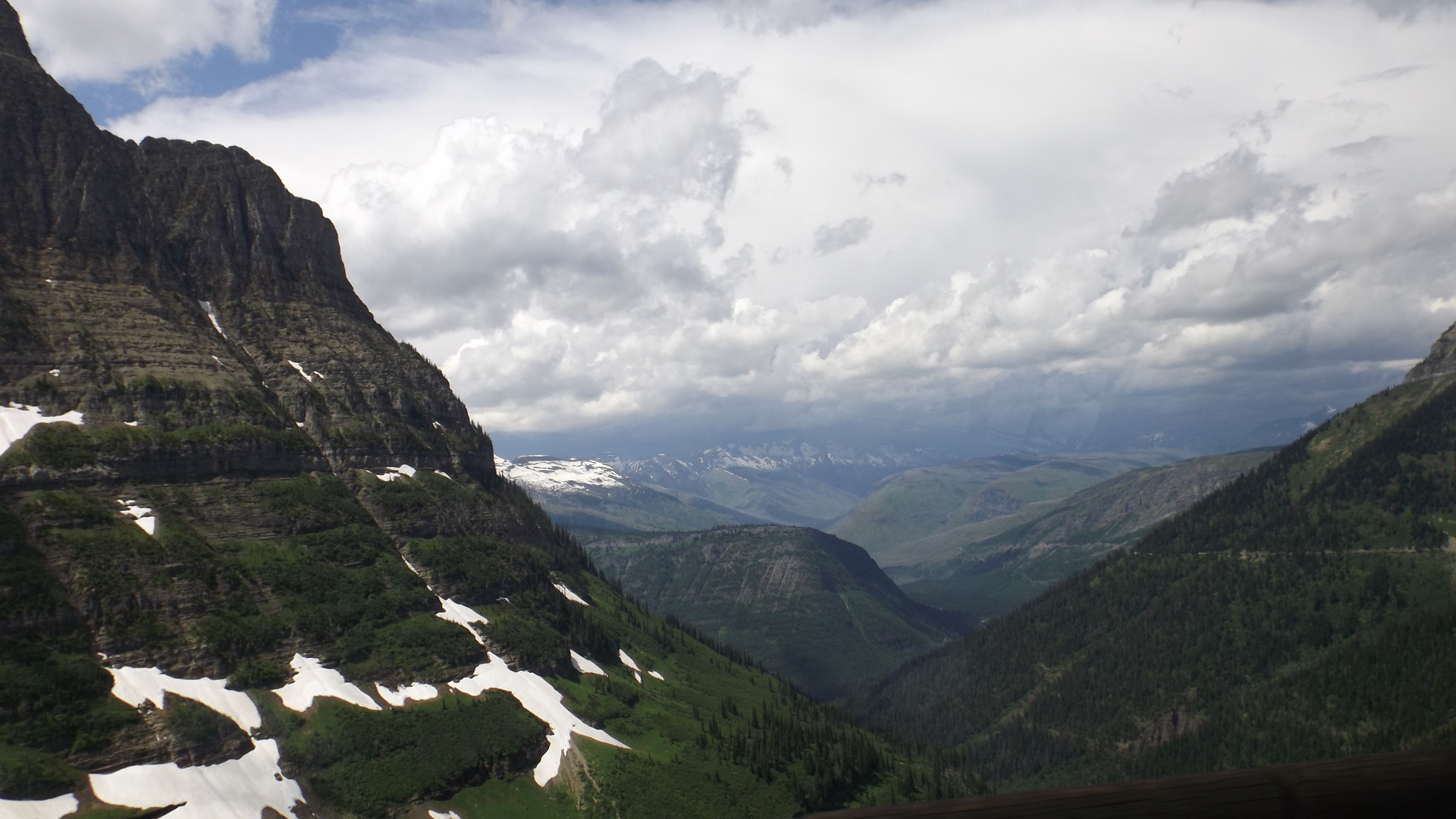 Today we rode the shuttles to Logan Pass, the halfway point on Going to the Sun. The scenery is splendid, and the only knock I have for the shuttle program is that they are not allowed to stop at overlooks for photos. Many of these pics were taken through the bus windows, but a few including this boy, were taken outdoors at Logan Pass. He was telling Kat how close his grandpa came to landing the title role in Groundhog Day, or something. Language barrier, you know.