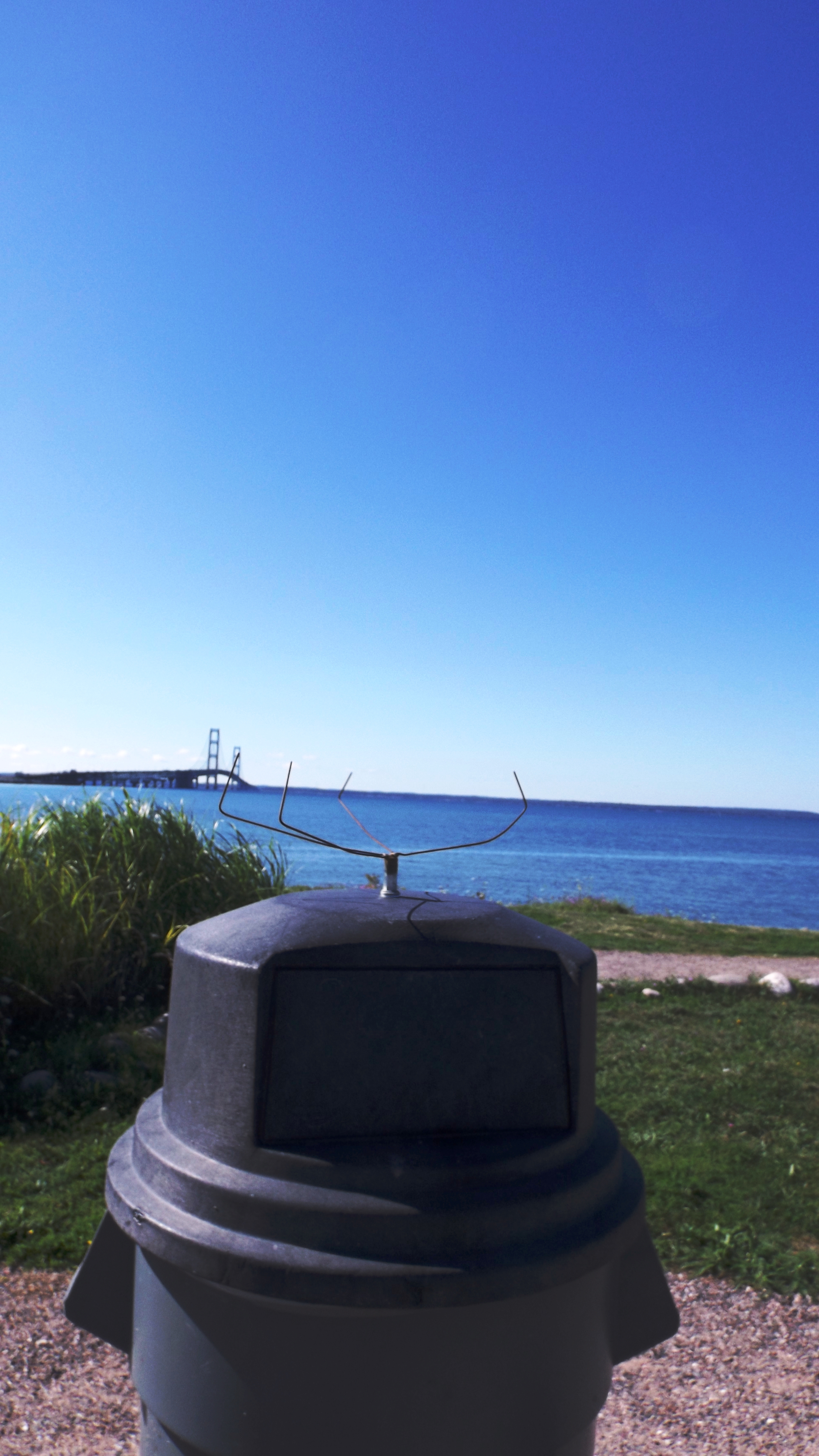 We pulled the AirStream south to the bottom of the UP and the Kewadin Casino in St. Ignace. This Saint is an old port town on the shores of Lake Huron, another huge, clear freshwater lake that makes its own weather. This casino has a fine view of the lake, if anyone would look. They offered us four free nights with electricity, water, and a dump station.