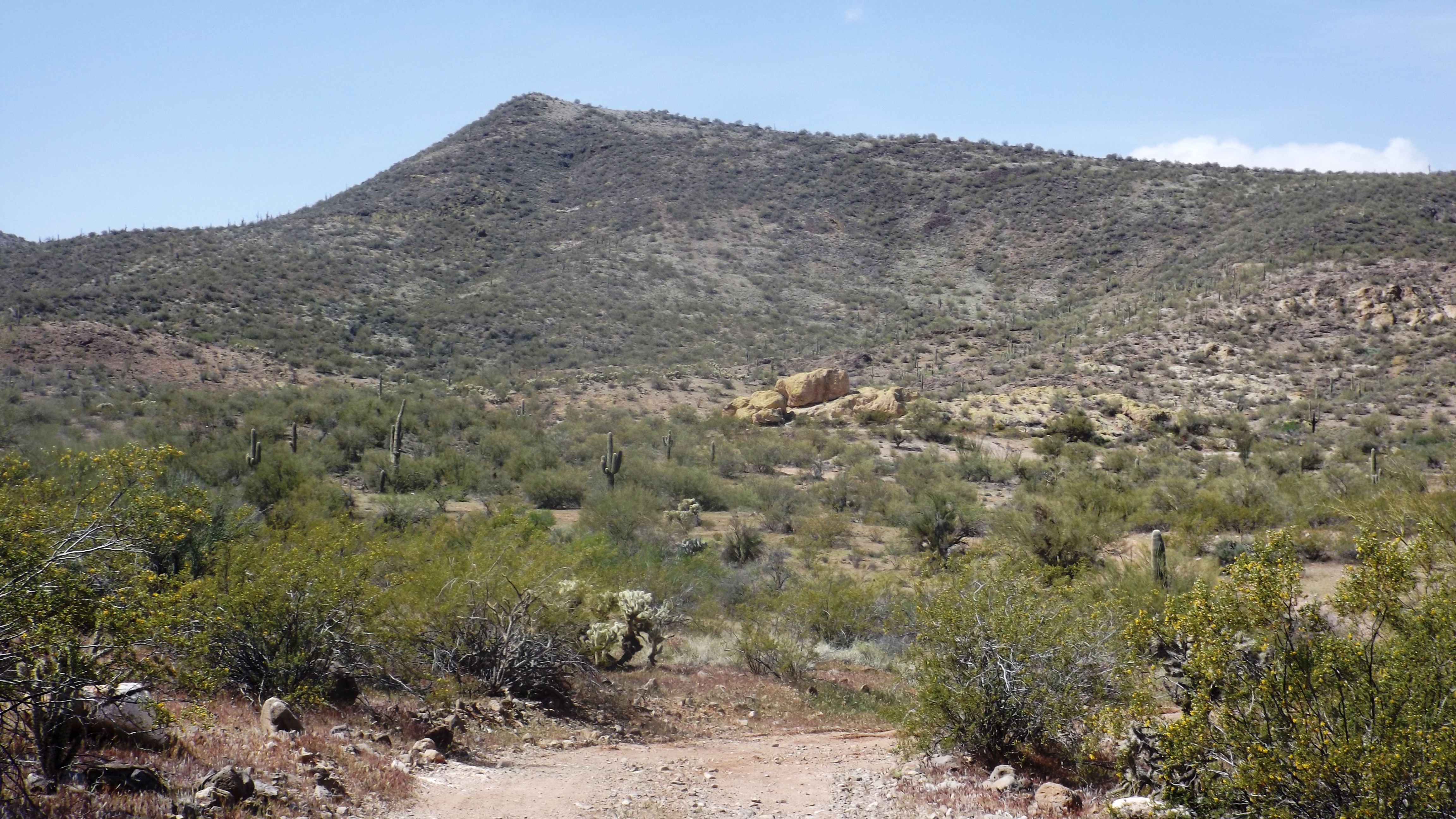We left the Desert Diamond Casino, a perfectly good paved parking lot in Tucson, five days ago. Kat was bored and itching to indulge her vision of RV life in the American West. To Kat, that vision takes the form of boondocking. For those who are not fully conversant with full-time RV’er vocabulary, “boondocking” means finding a free place to camp, and essentially become squatters there. The Bureau of Land Management does not object so long as you don’t litter, set fire to the countryside, or linger more than 14 days. The US Forest Service has more parks, likes to rent them, and is tougher. State forest policies are all over the place: you just never know. Even in this day of King Google the maps of government lands are somewhere between paltry and worthless. So most would-be boondockers rely on RV blogs. The accuracy of a blog’s directions to good sites swings wildly from ‘pretty good’ to ‘fiction’. Kat had read some things about a site on Vulture Mine Road, south of Wickenburg, AZ, and so we set out in search of America.