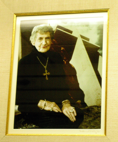 The Chapel of the Holy Cross began as a Catholic church, but its parish soon grew too large. It is now non-denominational six days a week, with a special Catholic service on Mondays. We learned that urban legends notwithstanding, neither Frank Lloyd Wright nor his son Lloyd designed it; that was the work of Aschen + Allen of San Francisco. The chapel was envisioned and funded by Marguerite Brunswig Staude, born in New Orleans, a sculptor educated in France who later became heiress to a wholesale pharmacy fortune. (Papa Brunswig did a huge patent medicine business, inventing most of them himself.) She sold the project to the junior Senator from Arizona, Barry Goldwater, who persuaded the Secretary of the Interior to sell a few hundred acres of Forest Service land for the Chapel. There had been many previous plans for the Chapel set in many different cities and nations, but Sedona won out. Mrs. Marguerite, a devout Catholic, hoped to build a monument dedicated to finding God through art. Upon its completion, she considered The Chapel to be her greatest artistic achievement, and the fulfillment of her life’s mission.