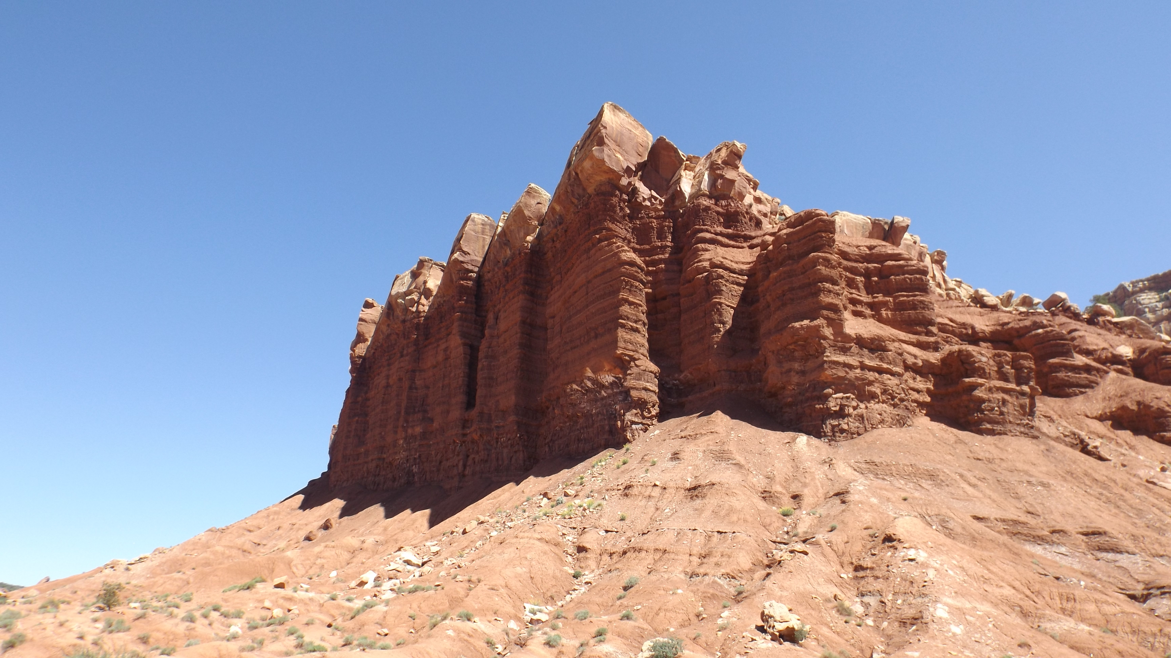 Capitol Reef is home to the country’s largest monocline. That’s a situation where land folds over itself as a result of continental drift, tectonic plate action, and all that. Sometimes a monocline traps oil, but here it trapped water. That’s bad news if you’re a real life J. R. Ewing, but pretty good news if you’re a bird, a chipmunk, a mule deer, or something that eats them.