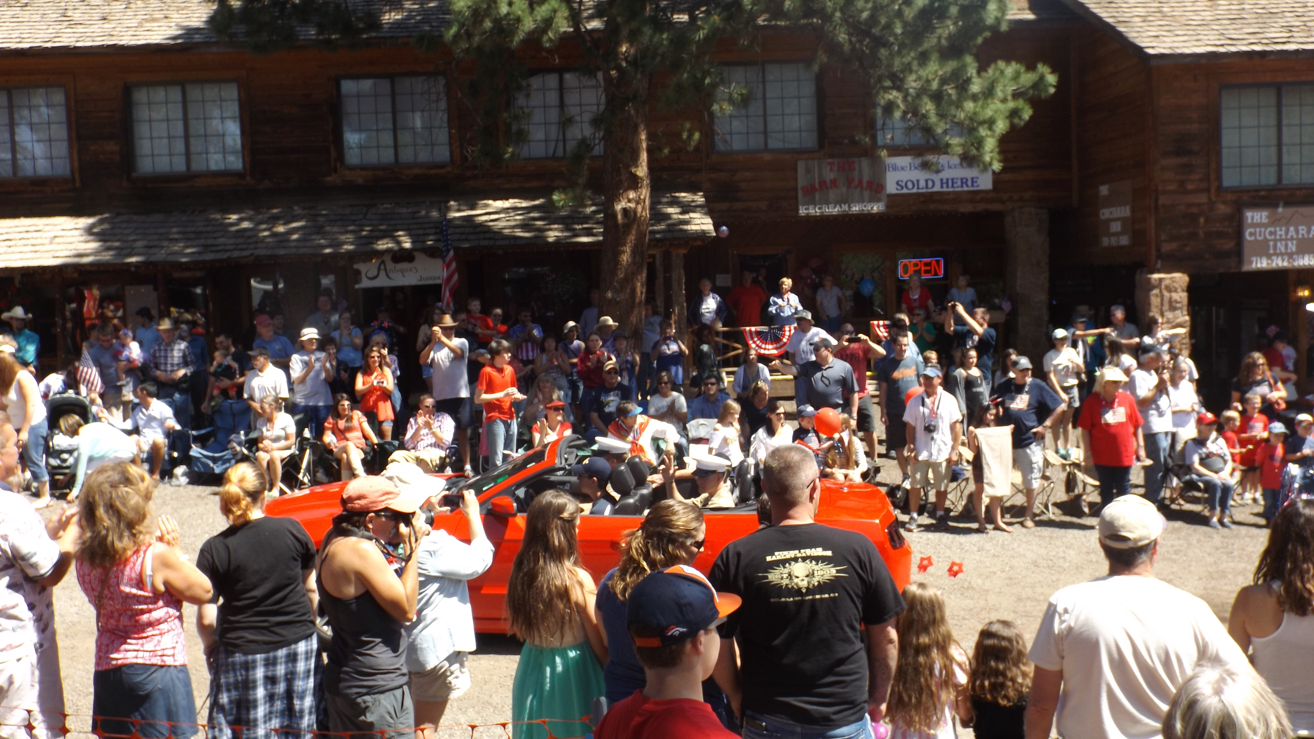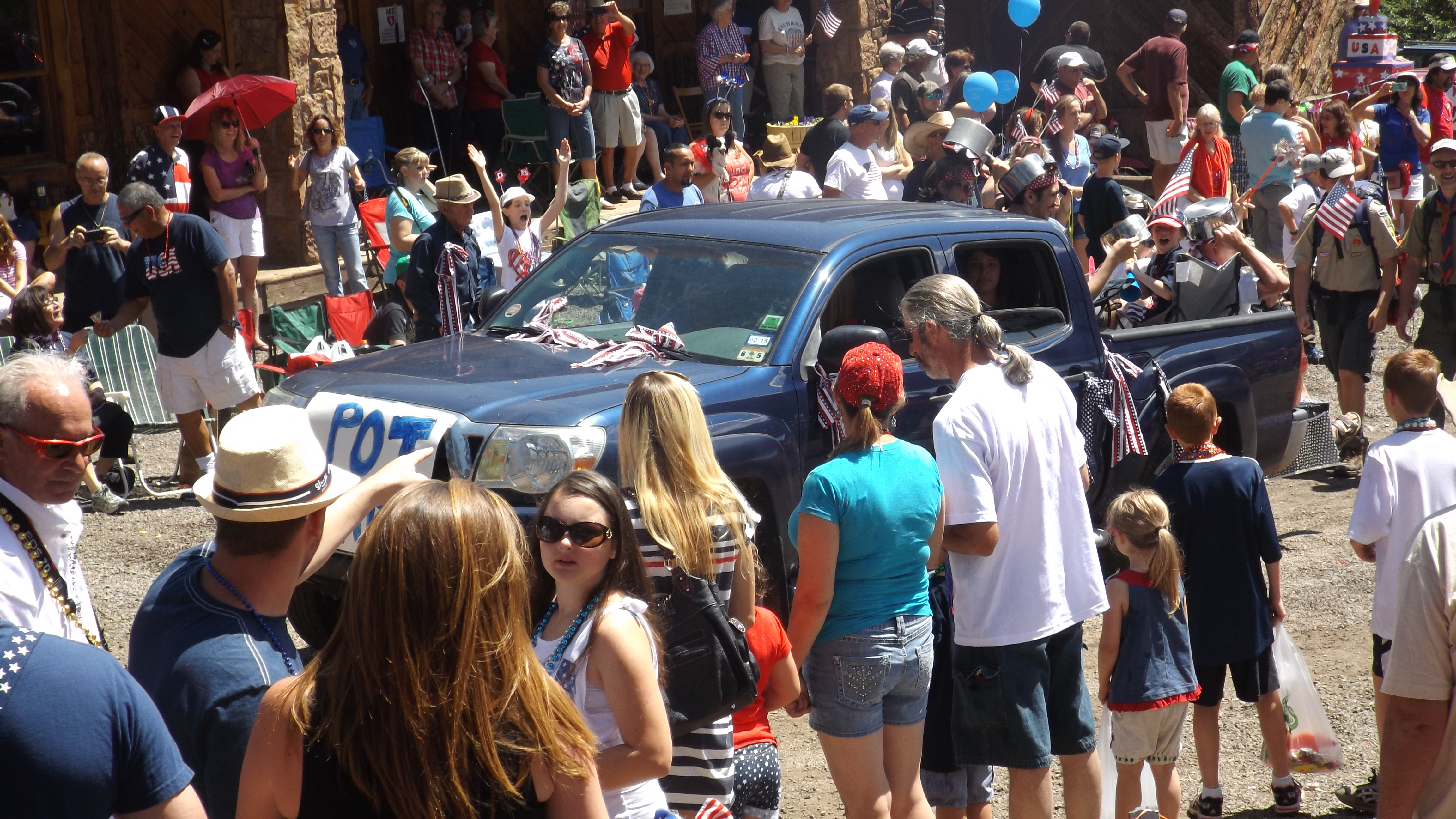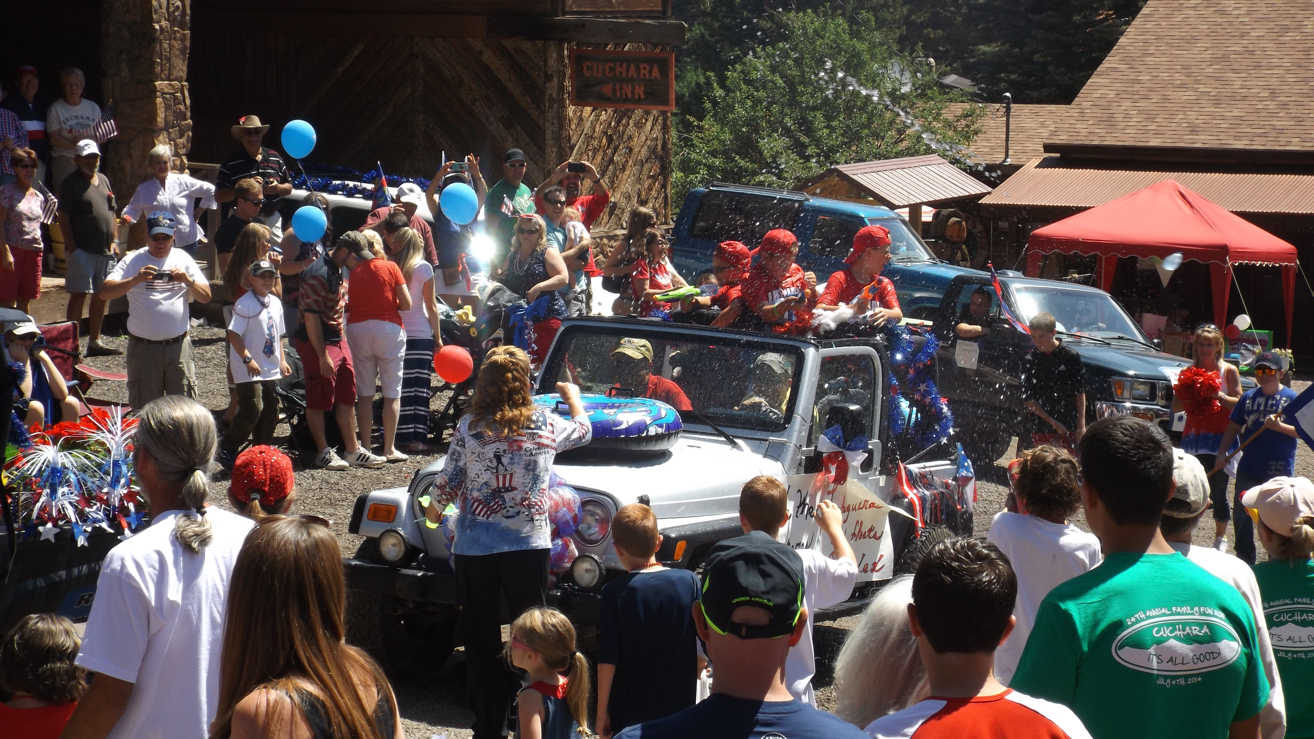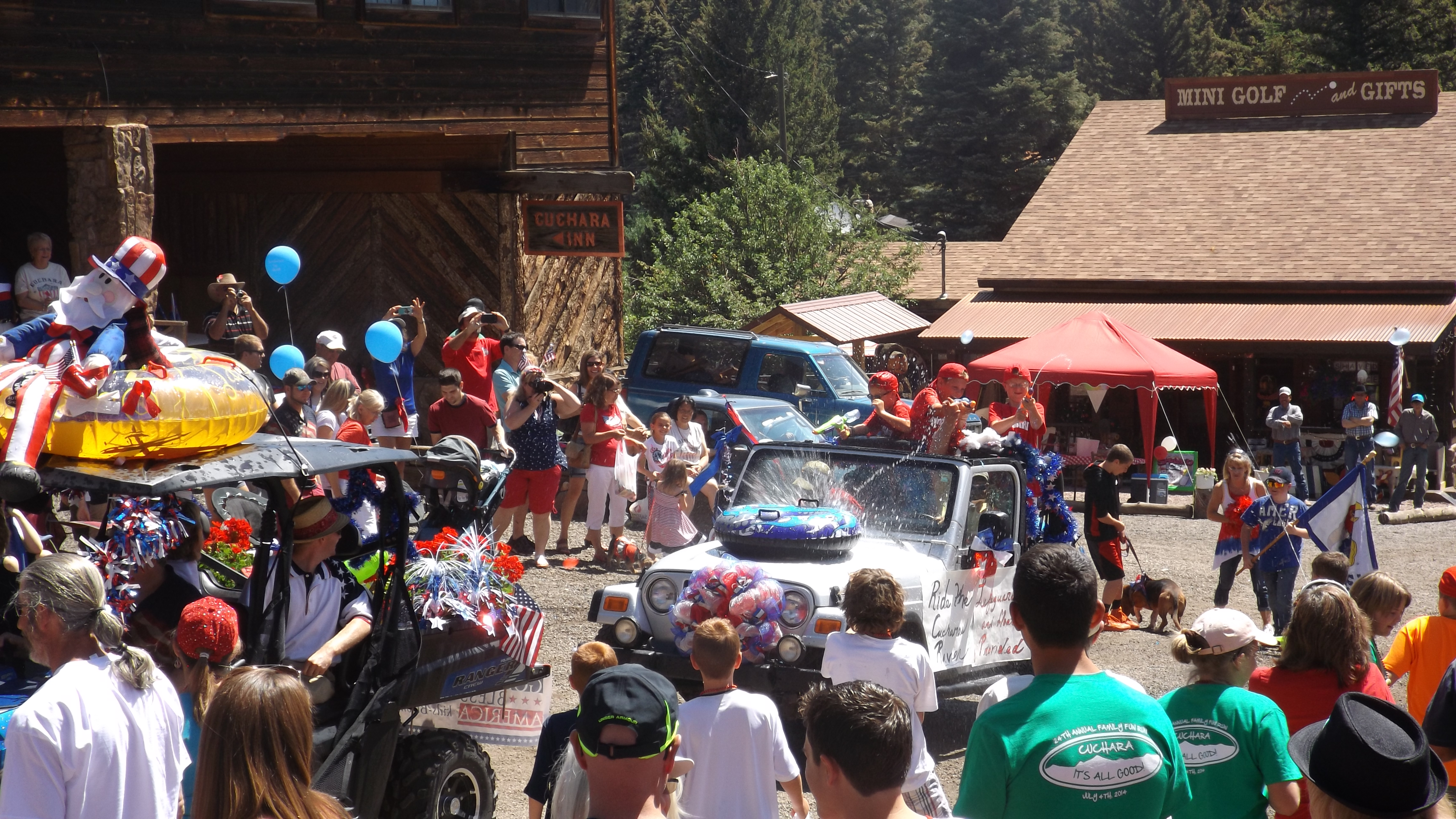 But all along the draw had been seeing old friends plus the July 4th parade Cuchara, Colorado hosts annually. Nanner fed us a big, early breakfast. The old folks ate as much as we could and then headed out for The Dog Bar and our street side seats along the parade route.