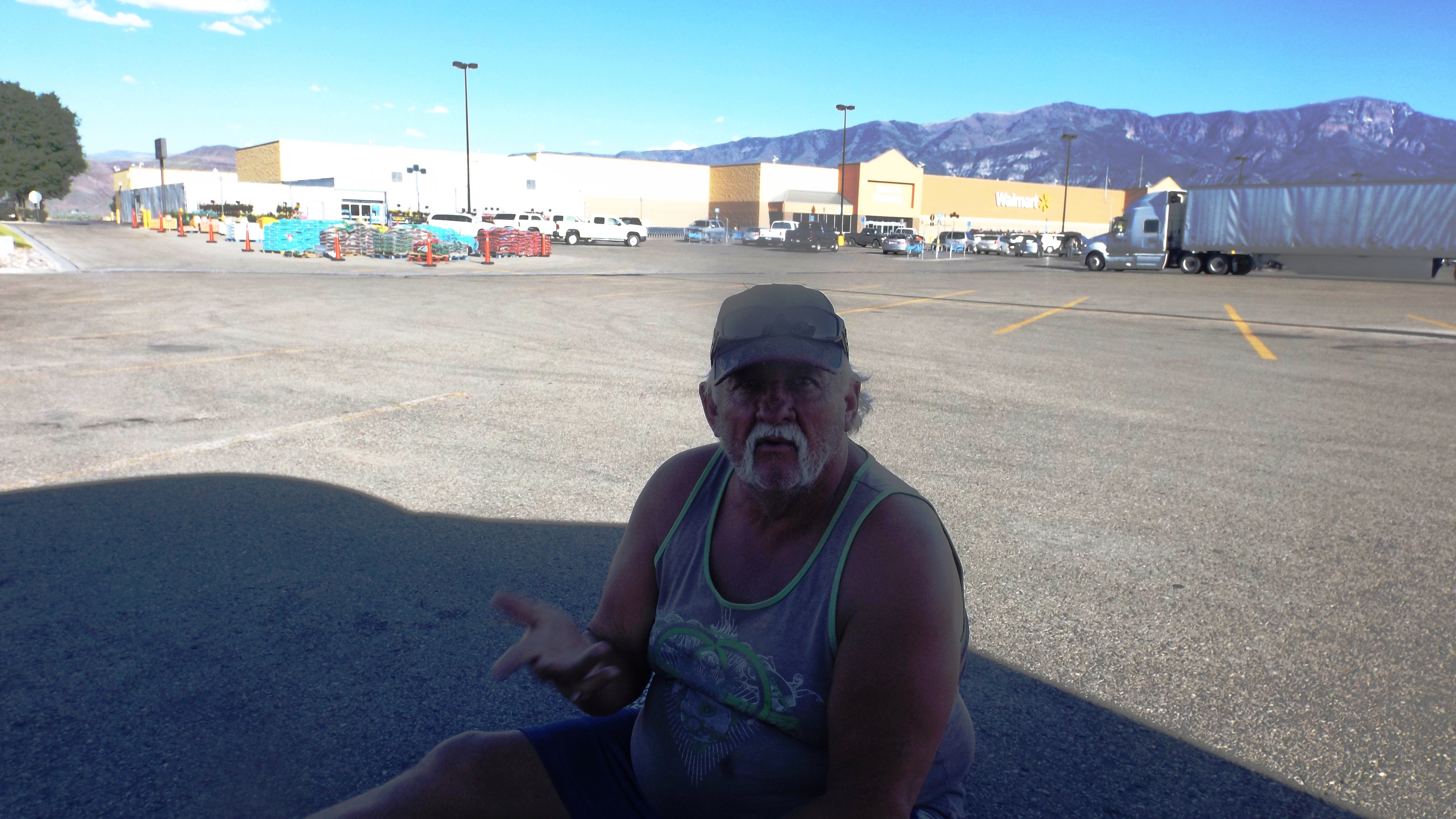 Raymond the disabled vet in Richfield didn’t do real well, but somebody gave him a bag of burgers from Carl’s Jr., and we saw three others stop to thank him for his service and drop a greenback or maybe even a five on him. When he’d earned enough he retired to his camper van in the WalMart lot. After some loud cursing at no one in particular about who knows what, he came over to chat with the Mayor of WalMart (the Kat). He was a little scary – you can’t help but wonder about his mental condition – so I went outside to discourage him.