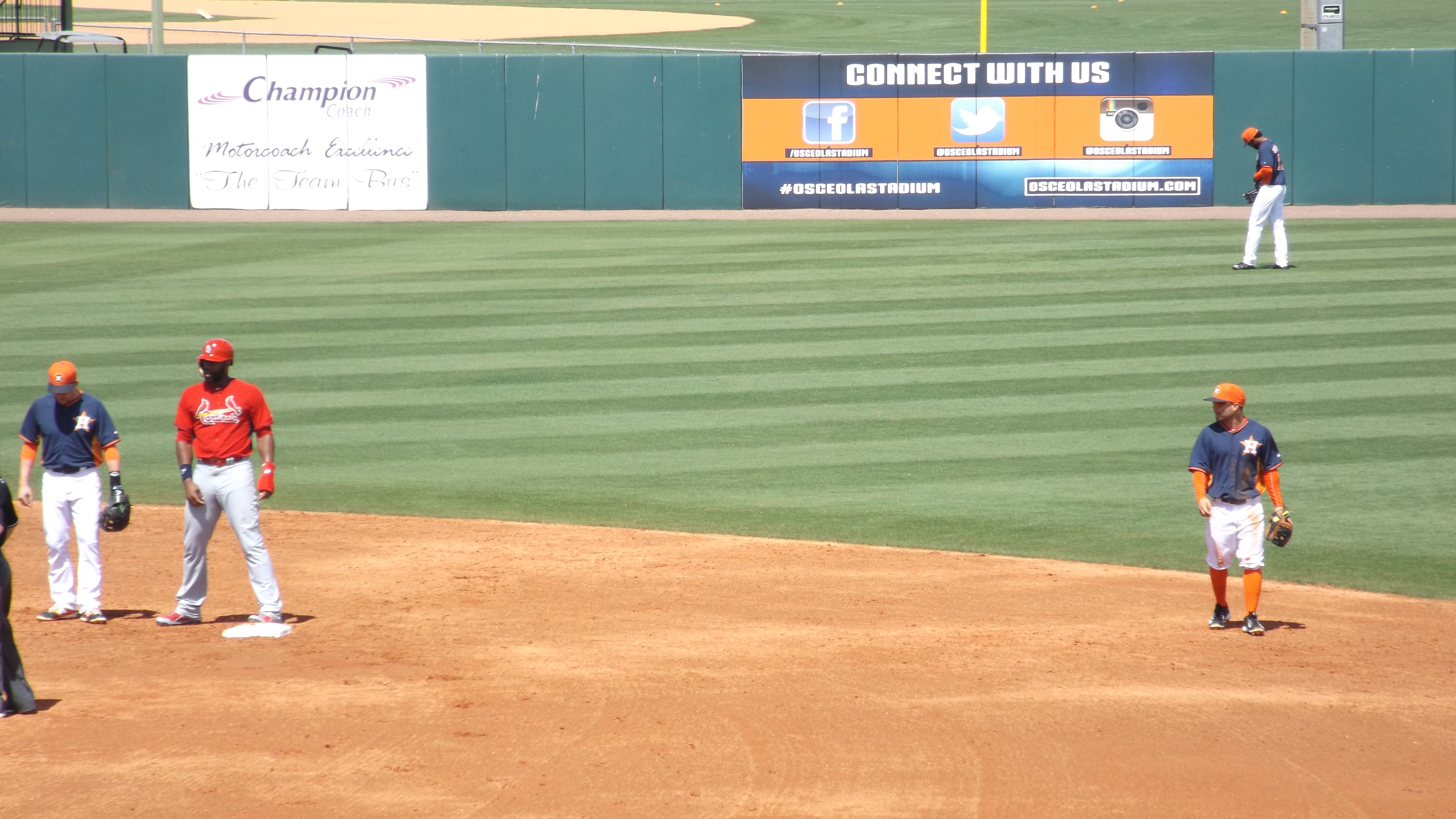We chose to catch an Astros game, despite Kissimmee also being the Braves’ spring training site. The Astros hosted the St. Louis Cardinals, one of the best-run teams in all of baseball for many years. The Cards are also the new home of one of Atlanta’s best young stars, Jason Heyward. The Braves sent him to the Cardinals for a pitching prospect who disappointed everybody in 2014. My buddy Walter and I saw Heyward in spring training five years ago (Heyward homered to dead center) and I wanted to appreciate the loose athleticism of J Hey one more time. I also wanted to see superstars-to-be George Springer and Carlos Correa of the Astros.