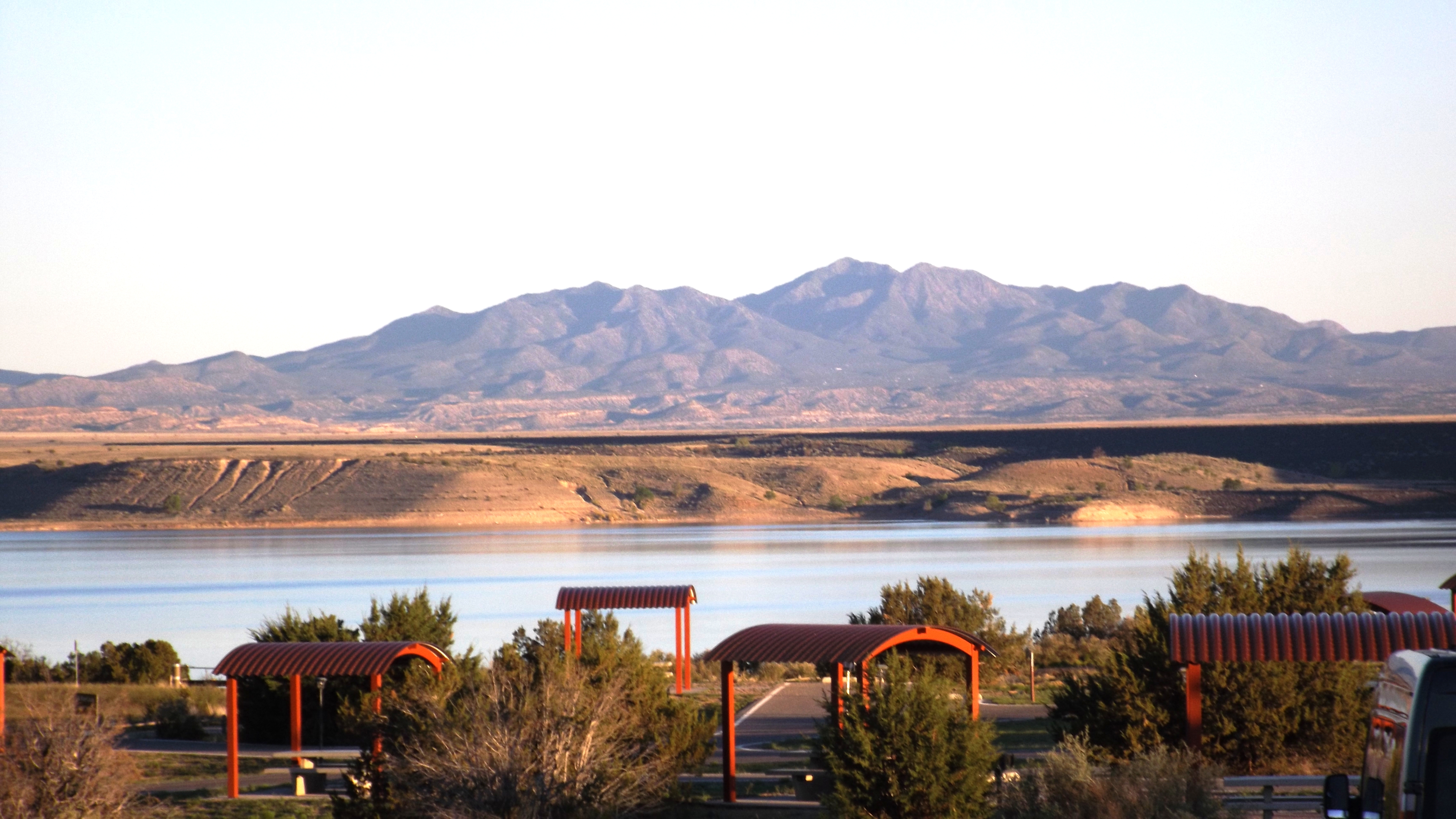 As we drove further west the trees turned to scrub and the cities became towns. Broad meadows of pasture became muddy feed lots, yet on we drove. We made camp in Amarillo, then survived a 340 mile pull to Lake Cochiti, NM. Here we’ll rest and explore lovely old Santa Fe.