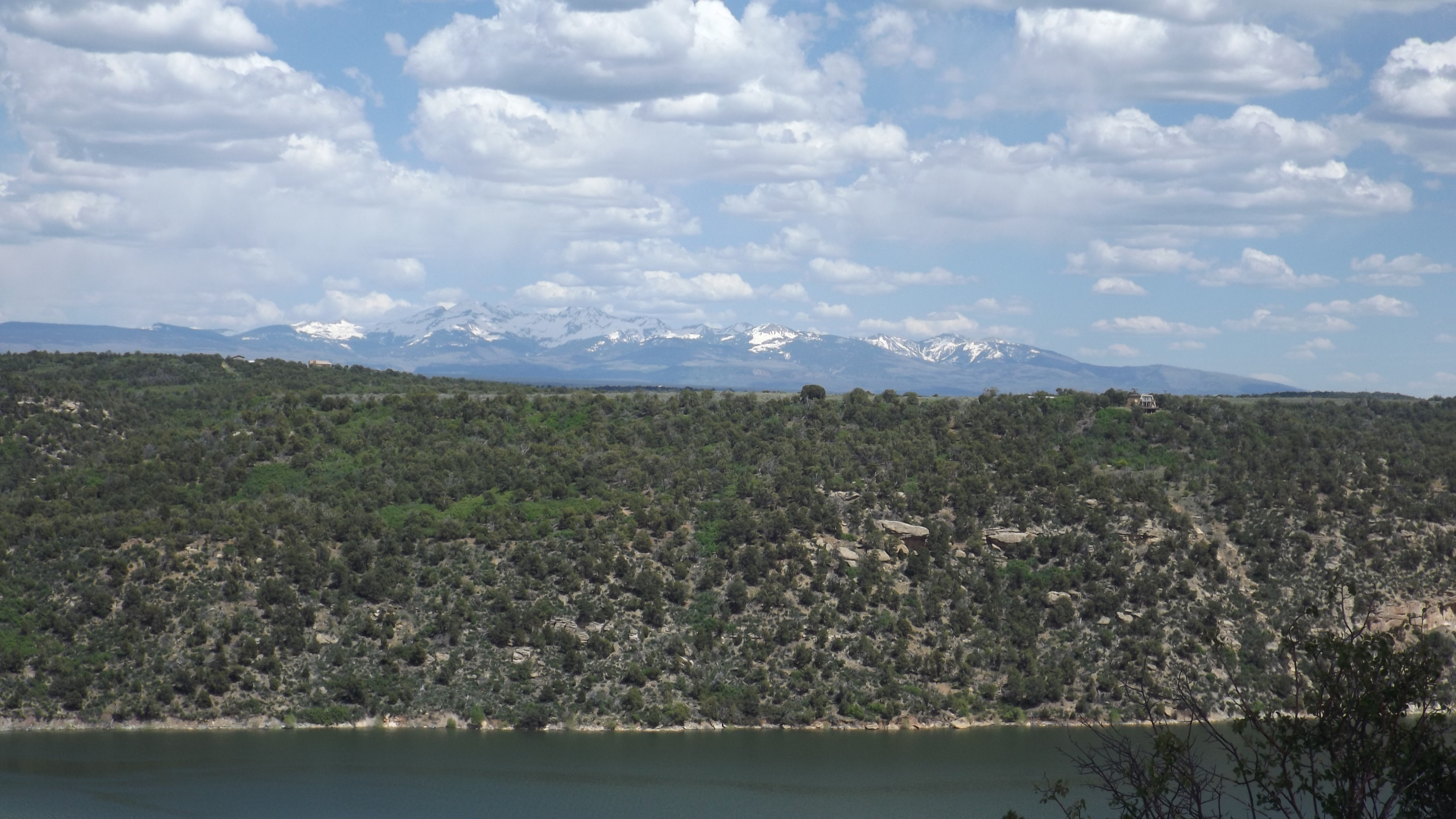 Roughly four miles northwest of Dolores, CO lies a lovely little Federal campground known as McPhee Reservoir. You want to book your reservation on the Pinon Loop because it’s the one with water spigots and at some sites, voltage. The dump station has not worked for a year or so (insufficient funding), but there are a few full hook-up sites you can drain tanks into when they’re unoccupied for only $5. You will have mountain views over 180 degrees, and birds and wildlife do well here. We have seen mule deer (big deer with huge ears) and so far no ticks. Mesa Verde National Park is about 25 miles away with an asterisk: the gate and the Visitor’s Center are 25, but the cliff dwellings are another 20 miles in on a scenic drive, unless you are the driver.