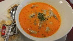 We seek out eateries recommended by Jane and Michael Stern of Road Food fame.   Thus far we have added two in Oregon, The Chowder Bowl in Newport and Fish Peddler in Bay City.  Chowder Bowl earned its name for its clam chowder and shrimp Louis, and we’re here to tell you the fame is fully deserved.  The chowder has no bacon, but lots of clams, folded into a silky smooth cream sauce.  Kat’s shrimp Louis uses tiny Pacific shrimp but the salad itself is huge.  We had dinner from what she couldn’t finish at lunch, and a wonderful dinner it was.