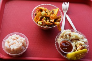 They were busy, and the calamari salads were on display in a refrigerator case … they may have been created by a supplier and I just didn’t want to hear that. Besides, I’m shy.