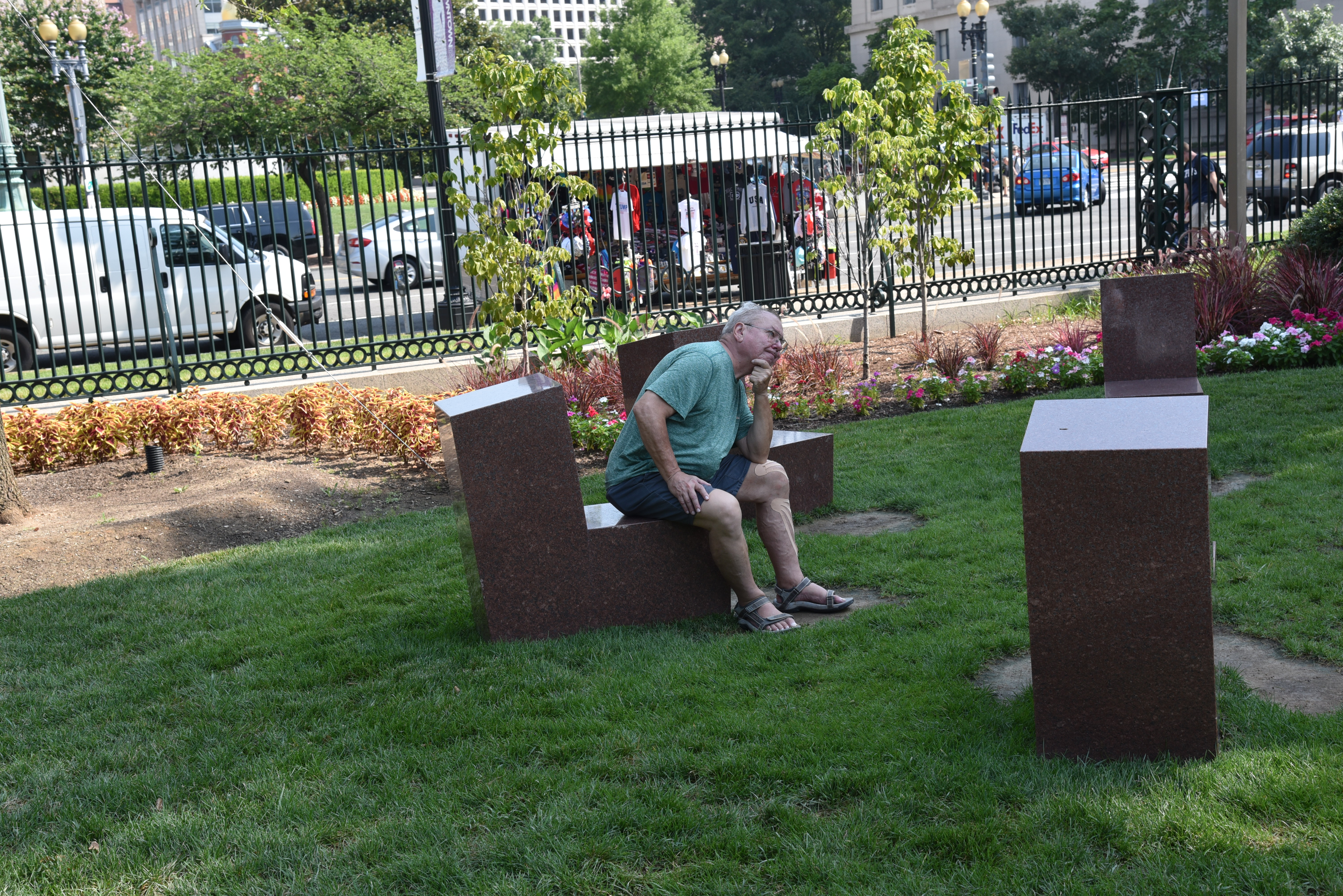 I feared my new knee would not be sufficiently strong or reliable to do much walking in D.C. But it held up and after hiking five miles or so combined in days one and two of our visit, and it felt good enough to do another couple of miles to see the outdoor sculptures at the Hirshhorn and National Gallery of Art. Kat took some wonderful pictures, and her pics are the story here. Of course I will butt in with some verbiage and adjectivage, but I cannot let her completely own the spotlight. And here we go.
